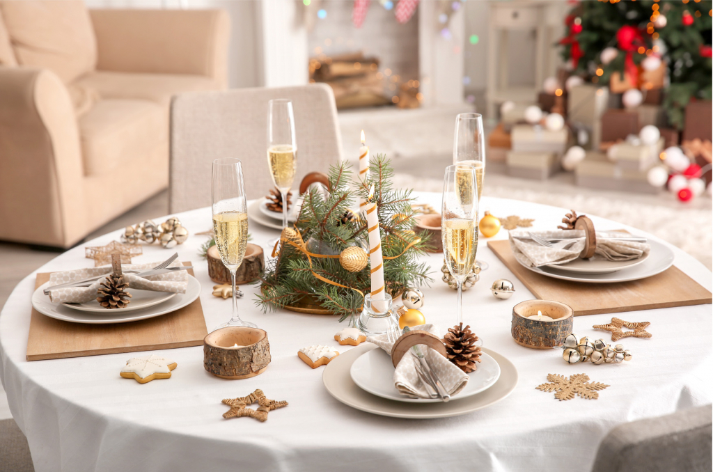 If a big tree won’t fit, or you’re looking for a more sustainable option, decorated miniature potted trees can be placed on either side of your fireplace to create a lovely focal point.