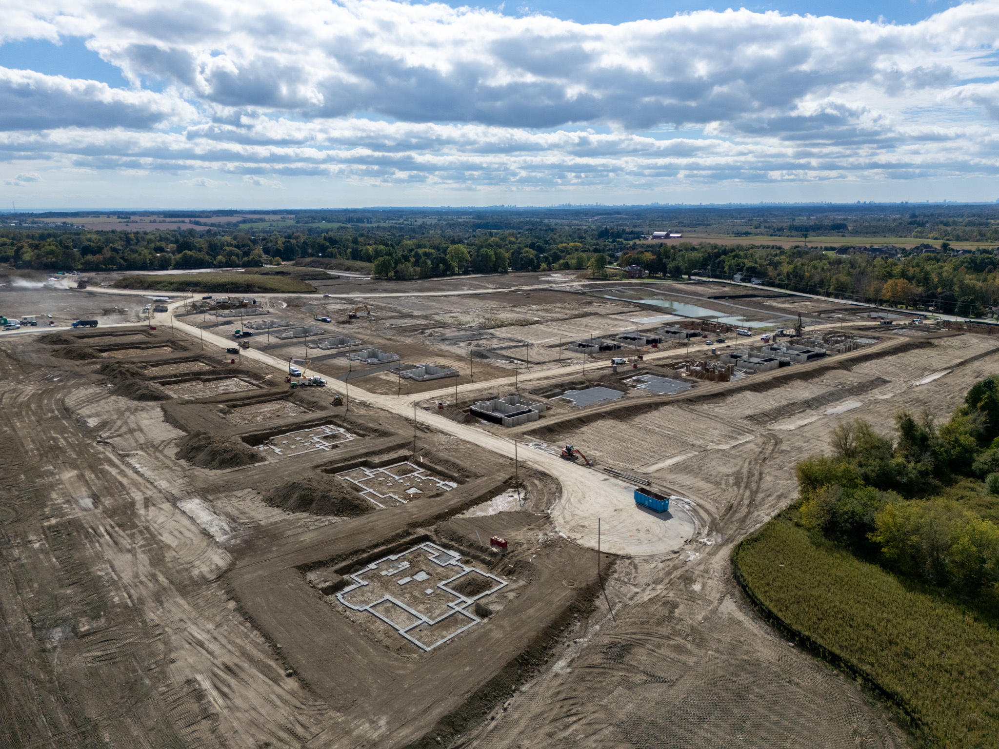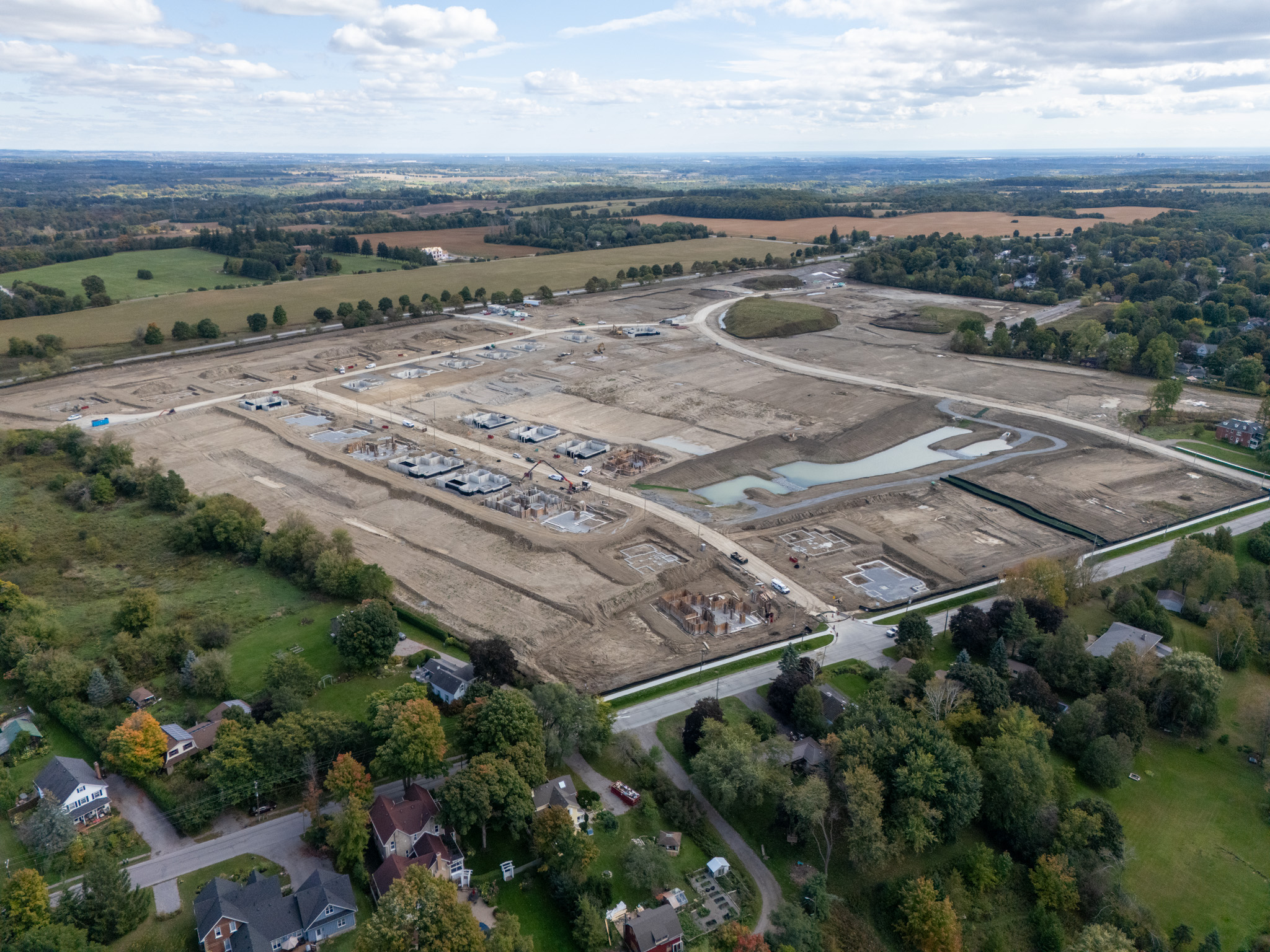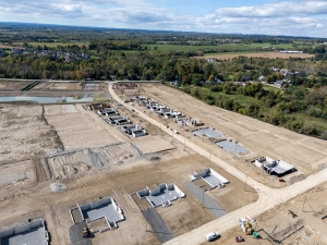 Exciting progress has been made over the past months as this award-winning community begins to take shape. The east stormwater management pond is now fully constructed and supports sustainable water management for the community.Base road construction on Loyst Avenue, Lehman Court, and Samarillo Place is finished, providing a solid foundation for the neighbourhood’s connectivity. Home construction has officially begun, moving through various stages from excavation to masonry.