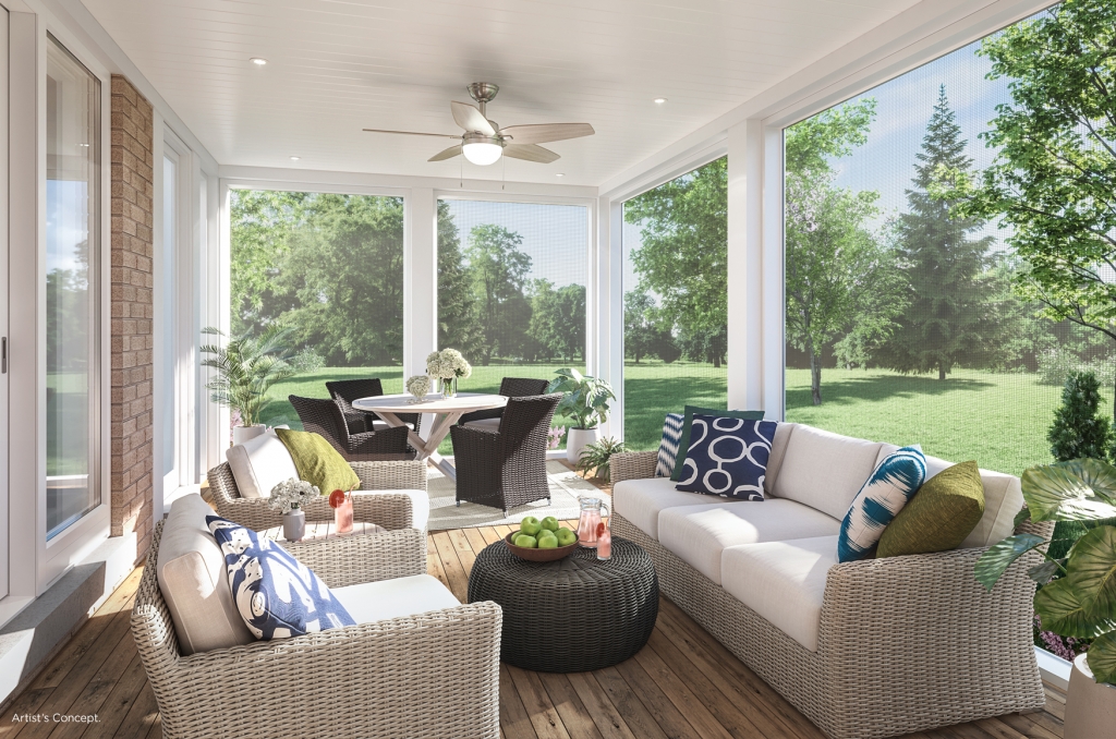Our homes are designed to seamlessly blend indoor comfort with outdoor serenity, as demonstrated in this 3-Season Room at Courts of King’s Bay.