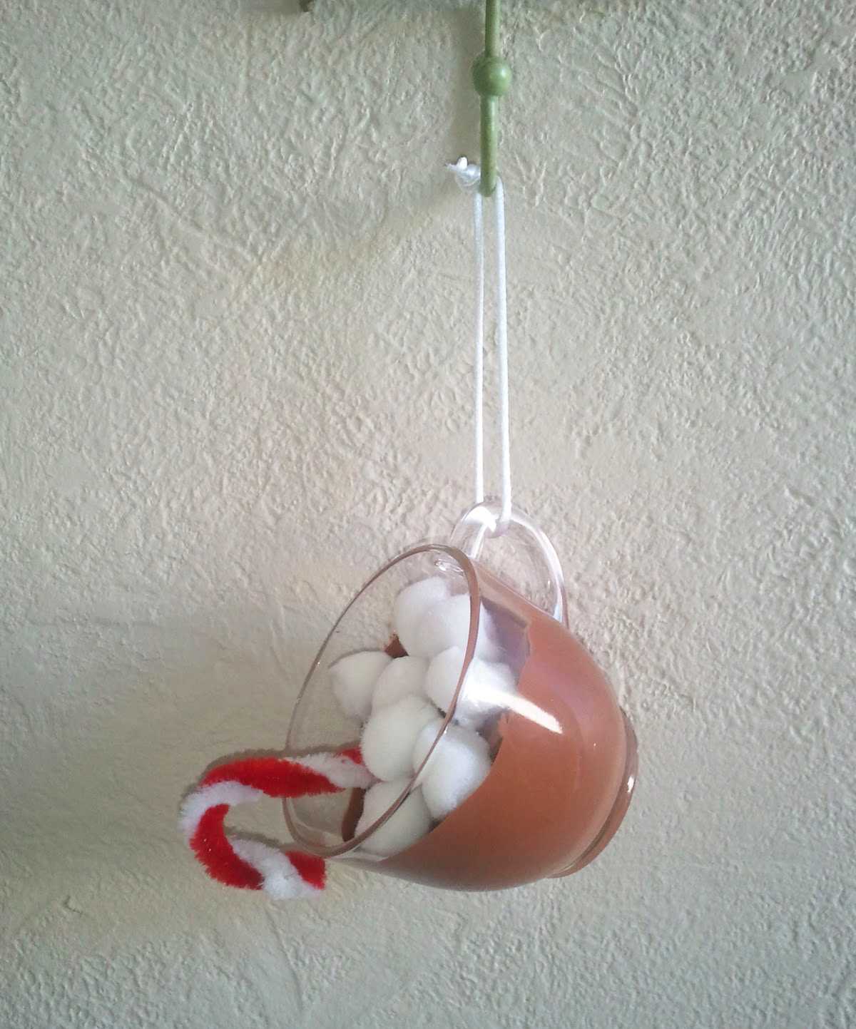 Christmas tree mobile is simply ornaments suspended on clear threads