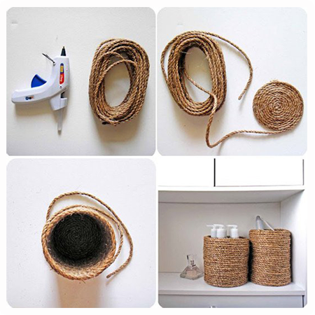 When it comes to dressing up those jars, look at what a little rope, or twine, and hot glue can do! Although the photo if self explanatory, for detailed instructions I have to credit ApartmentTherapy for turning me on to this craft.
