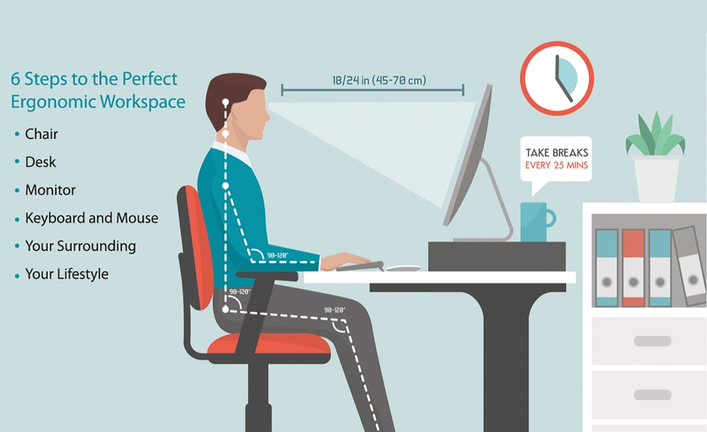 Ergonomics Trends illustrates the perfect ergonomic workspace