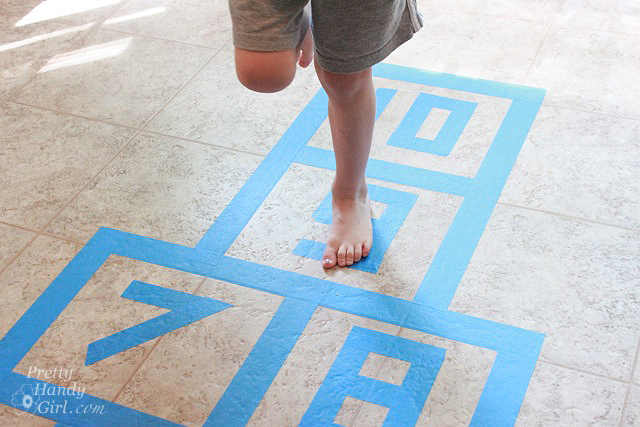 Whatever happened to the art of Hopscotch? Is it just a summer past time? Well, with a roll of painters’ tape you can make a hopscotch board inside and have the kids hopping their energy away. Pretty Handy Girl was the inspiration behind this activity.