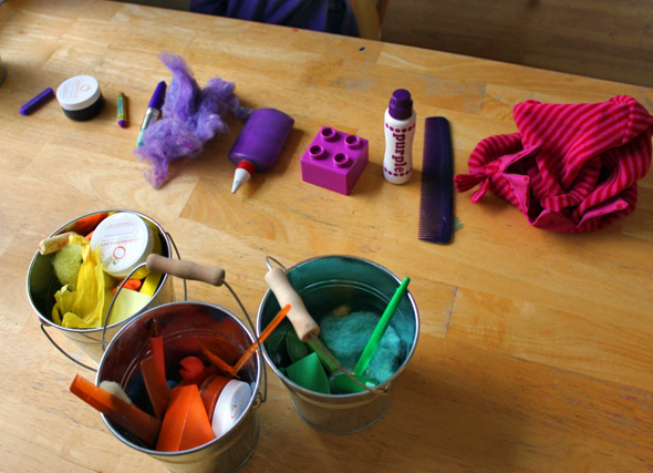 Thanks to Artful Parent for this idea! This fun activity will keep the kids busy while you’re starting dinner. Give your child/children a small pail or basket and ask them to find 10 orange items around the house that would fit inside the container. Repeat with different colours.