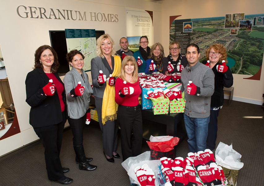 In true Canadian spirit Geranium Homes and Pace Credit Union purchased 300 pairs of Olympic Red Mittens to support Canadian athletes. The mittens were then donated, on behalf of Geranium and our homebuyers, to York Region shelters – in particular Blue Door Shelters, Yellow Brick House and Sandgate Women’s Shelter .