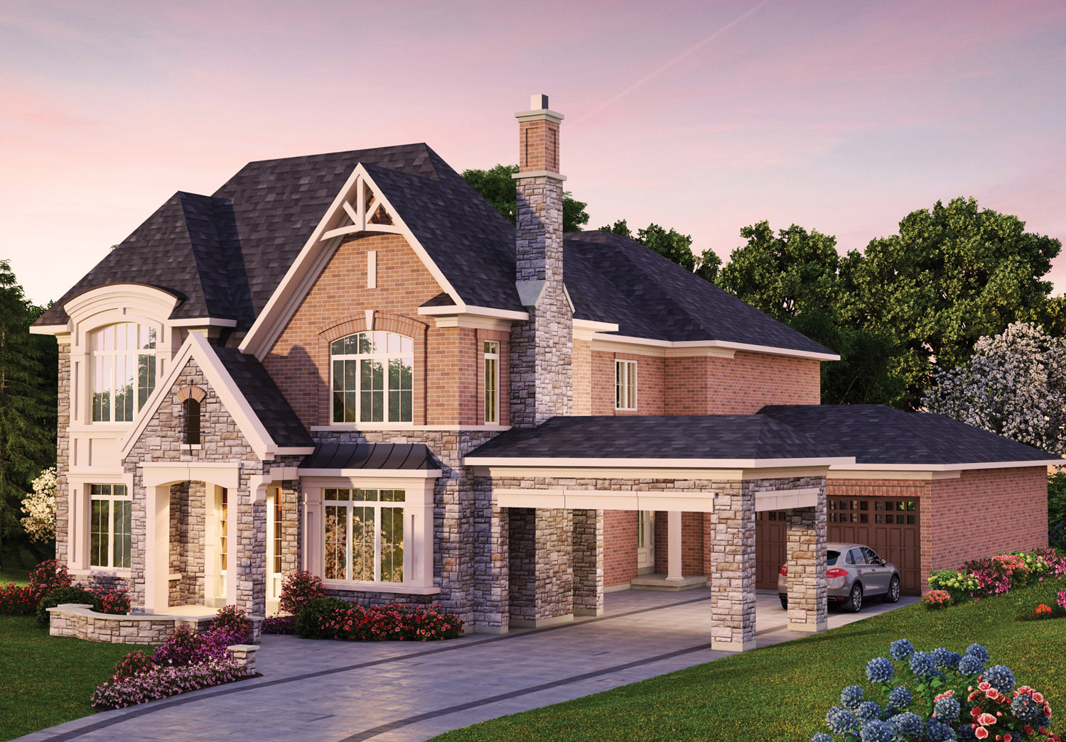 Geranium Homes has raised the bar on exterior and interior design and construction excellence with Copperstone.  Set in an exclusive private enclave, these magnificent collection of manor homes will offer breathtaking layouts and the finest features and finishes. The Glenmore model definitely stands out with its impressive exterior of brick and stone, arched windows, covered porch and magnificent stone Port Cochere.