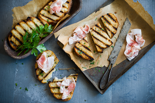 Take a beautiful crusty loaf of bread, slice it, brush with olive oil and a bit of garlic and it’s a surefire hit.  There’s really no need for a recipe but Todd+Diane do offer a step-by-step guide here.