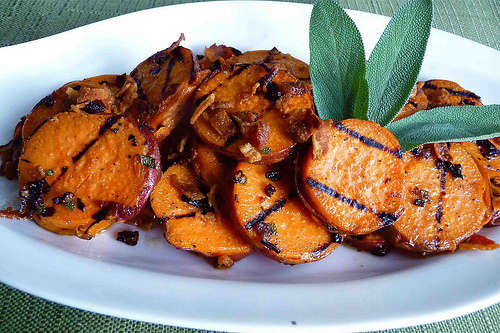 Regardless of the season, Sweet Potatoes are a great option! We found this yummy recipe for Grilled Sweet Potato with Pancetta and Sage Vinaigrette Dressing on Cookin’ Canuck. You can easily substitute bacon for the pancetta.
